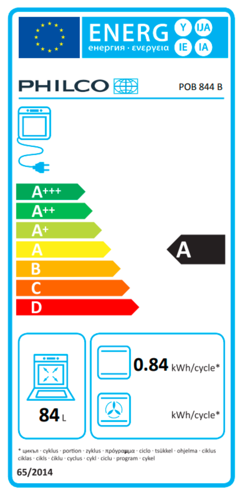 | Objem trouby L | 84 |